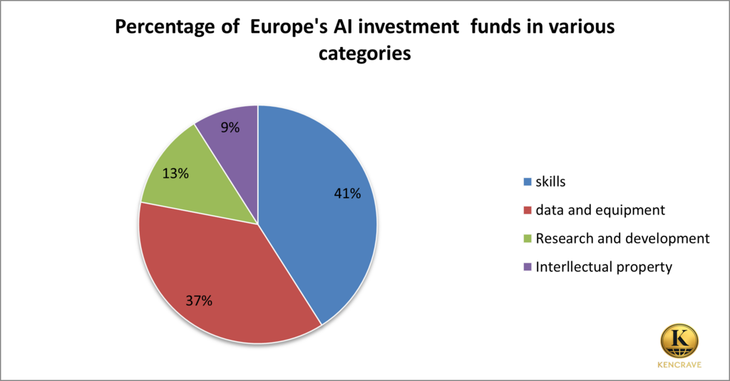 Europe AI investment fund allocation pie chart – skills, data, R&D, intellectual property. Source: OECD