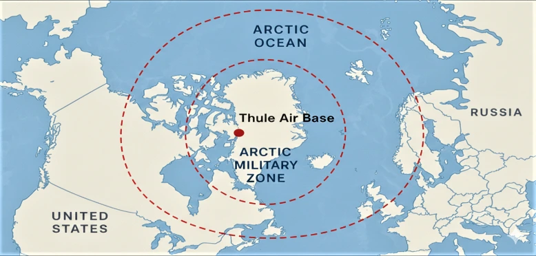 Greenland’s position in the Arctic makes it a critical node in global security. At the heart of this is the Thule Air Base, which serves as a cornerstone of U.S. and NATO missile defense and Arctic surveillance. Its location provides Washington with military leverage, enabling dominance in the Arctic and offering early‑warning capabilities against potential threats.
