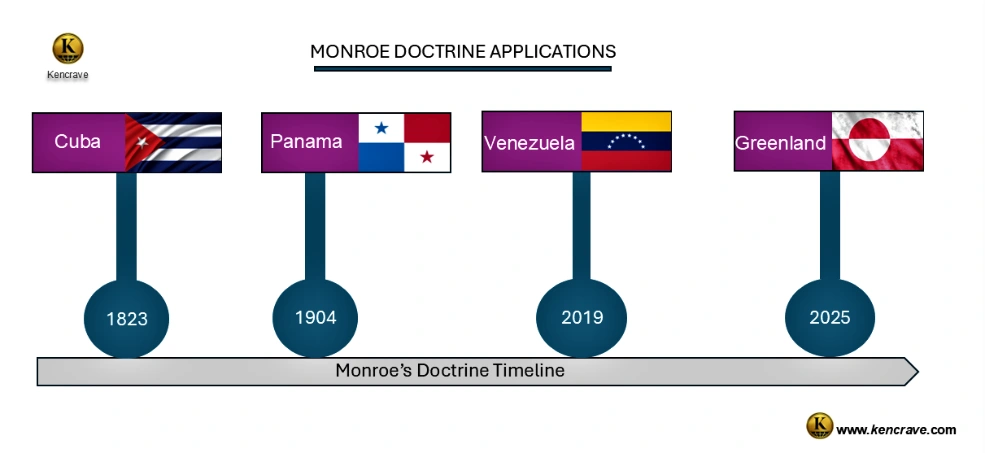 The Monroe Doctrine, historically applied to Latin America, has been extended by Trump to include the Arctic, framing Greenland as a key part of hemispheric security.