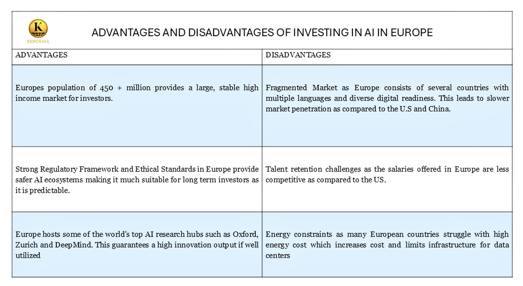 Advantages and Disadvantages of AI Investment in Europe