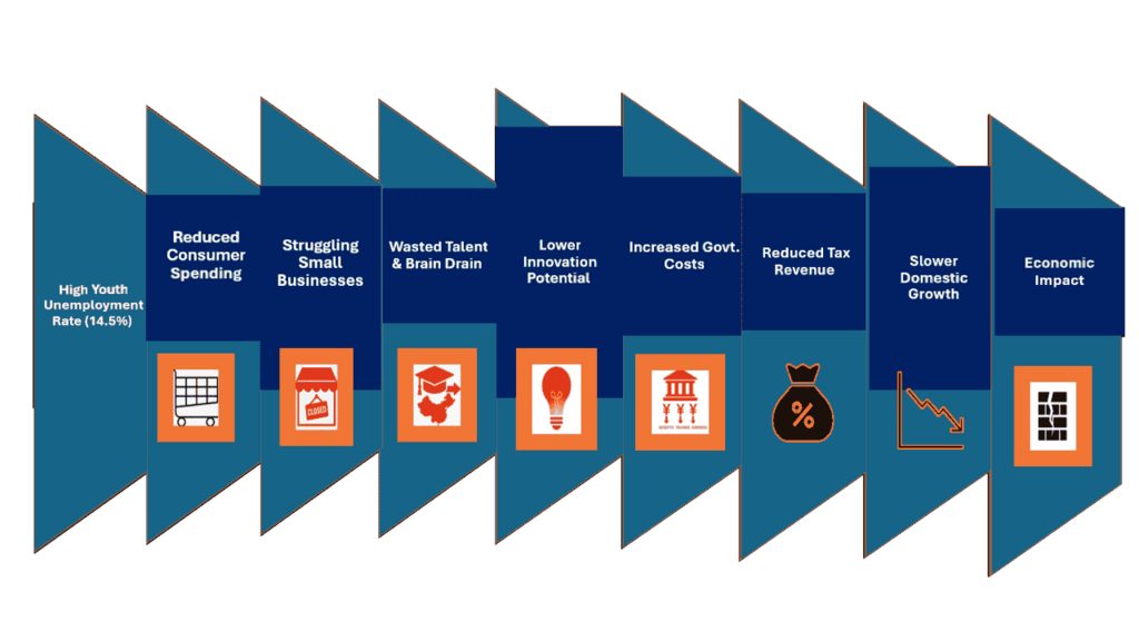 When young people are unemployed, they don’t earn money, which means they also can’t spend it. This affects the economy in several ways: